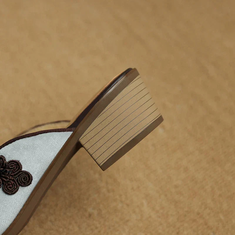 Slip into luxury, fine mulberry silk and soft cowhide leather. The soft, supple leather feels smooth and comfortable against your skin, while the silky texture adds a touch of unique charm. Finished with a delicate embroidered floral accent.