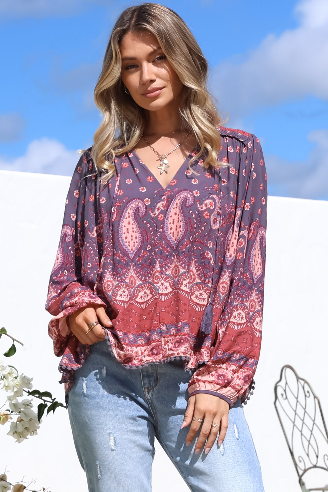 This cute Jaase top is a must-have in your wardrobe. This relaxed blouse is the perfect piece to pair with basic skinny jeans for a boho winter look!